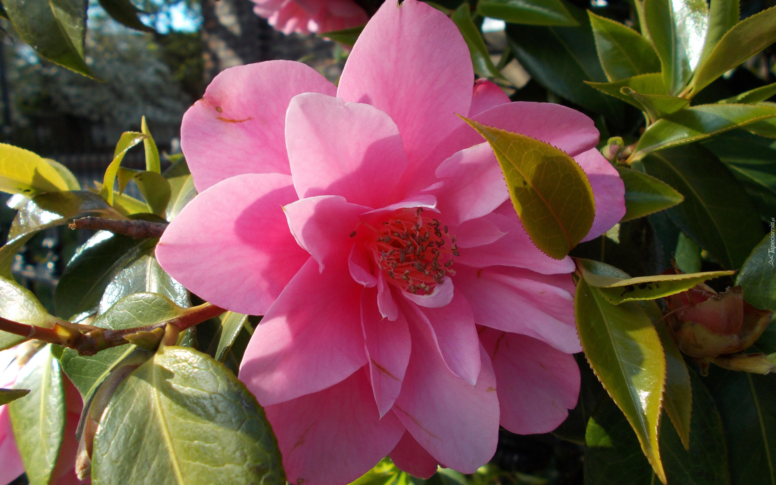 Edytor tapety: Różowa kamelia w zbliżeniu