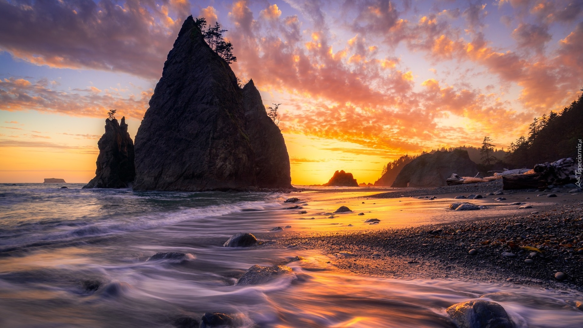 Edytor tapety: Drzewa na skałach na brzegu morza