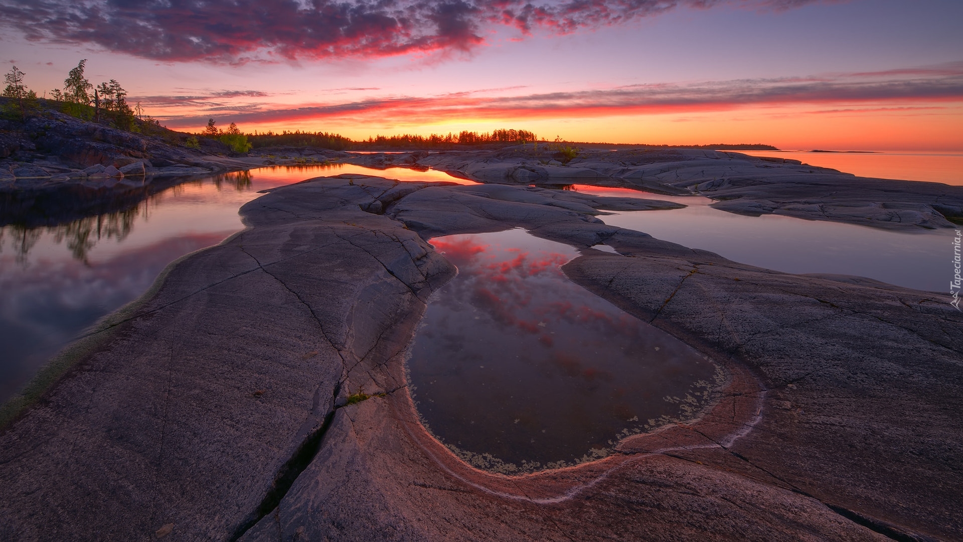 Edytor tapety: Skały na Jeziorze Ładoga pod kolorowym niebem
