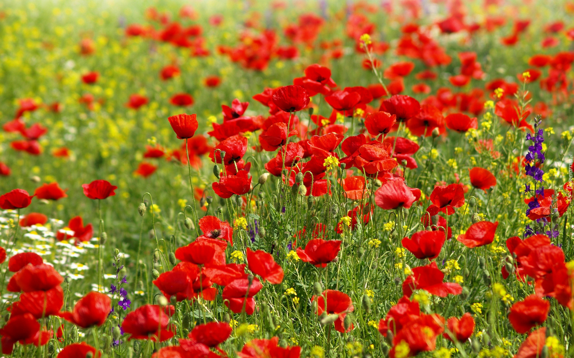 Edytor tapety: Czerwone maki i polne kwiaty na łące