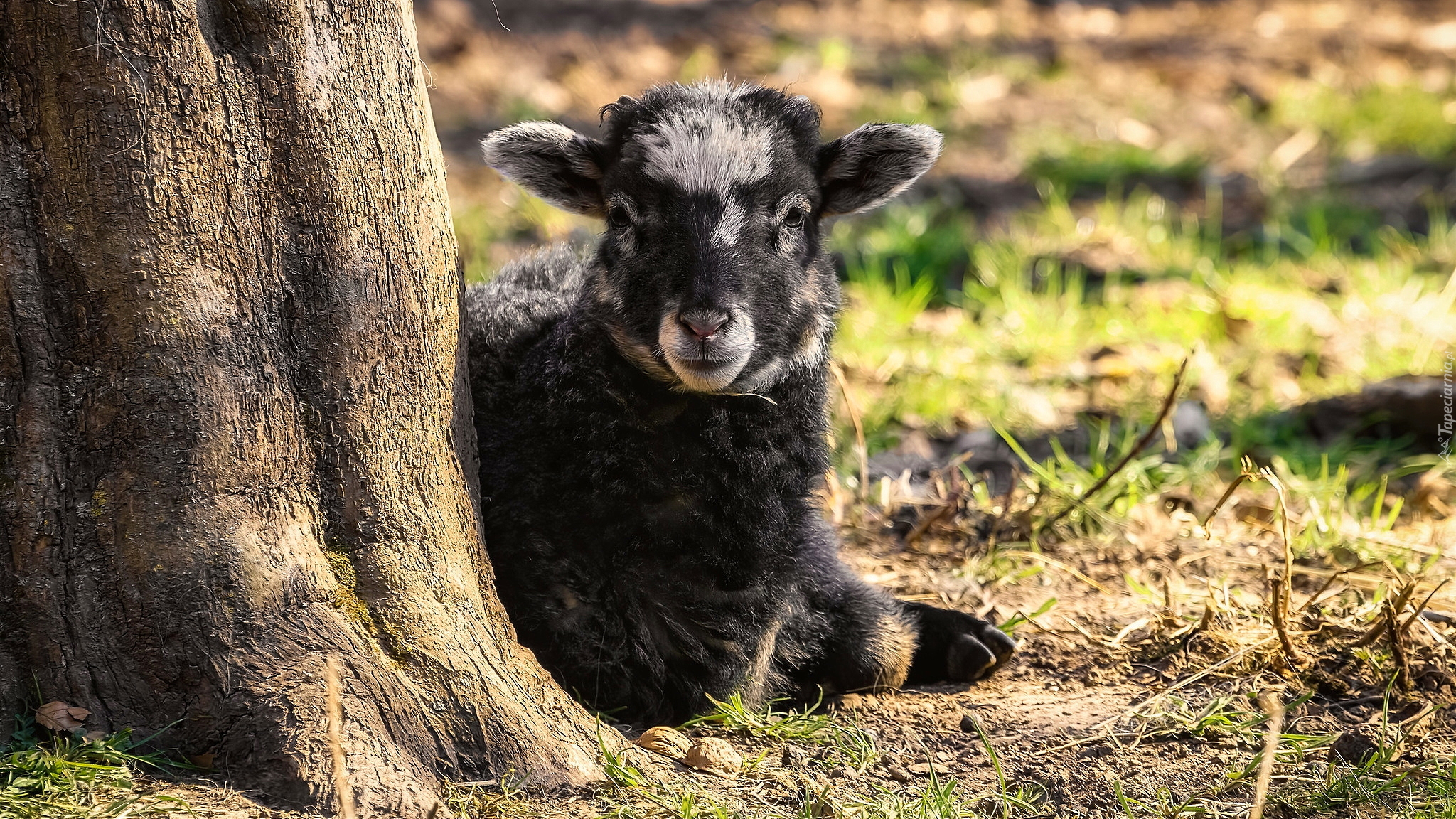 Edytor tapety: Owieczka pod drzewem