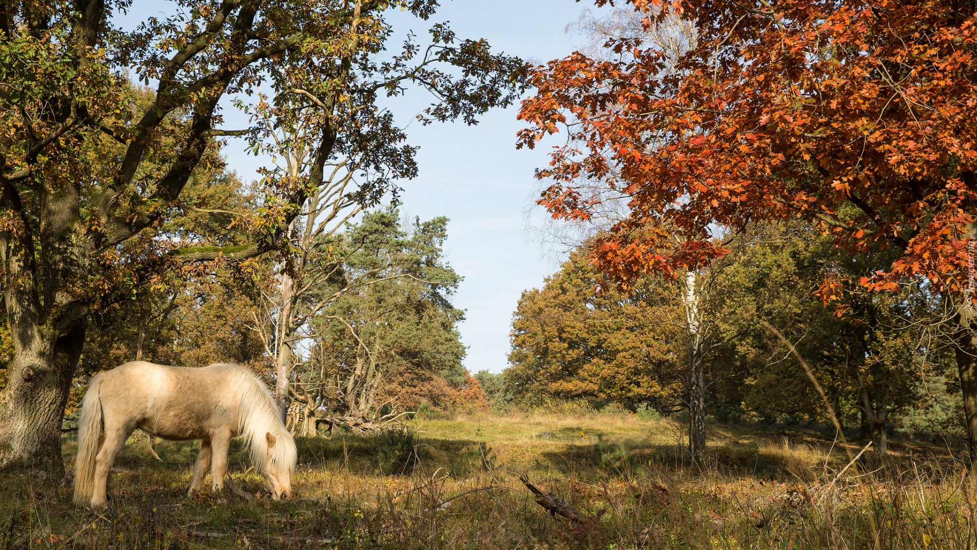 Edytor tapety: Biały koń pod drzewem
