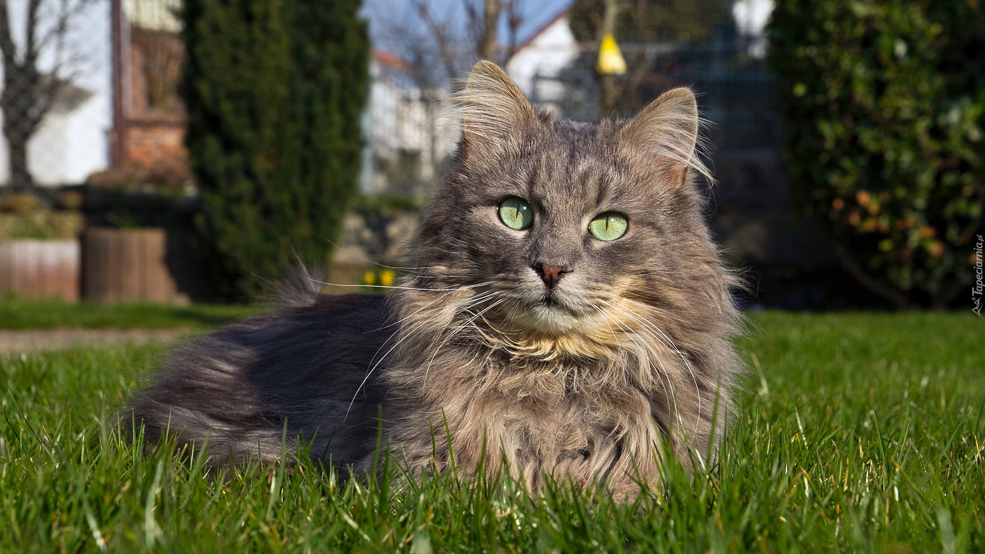 Edytor tapety: Szary kot na trawie