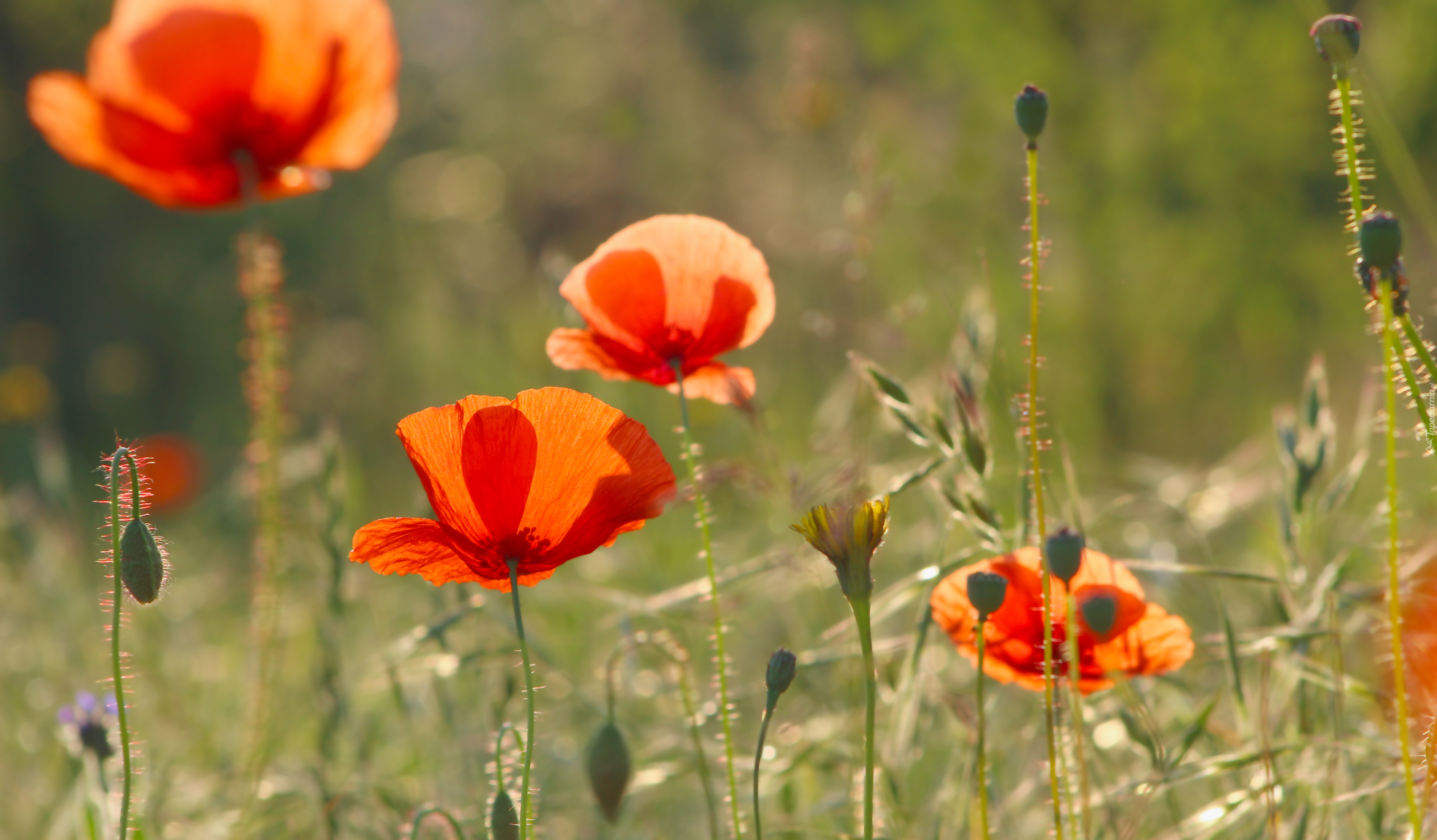 Edytor tapety: Rozświetlone maki z pąkami w zbliżeniu
