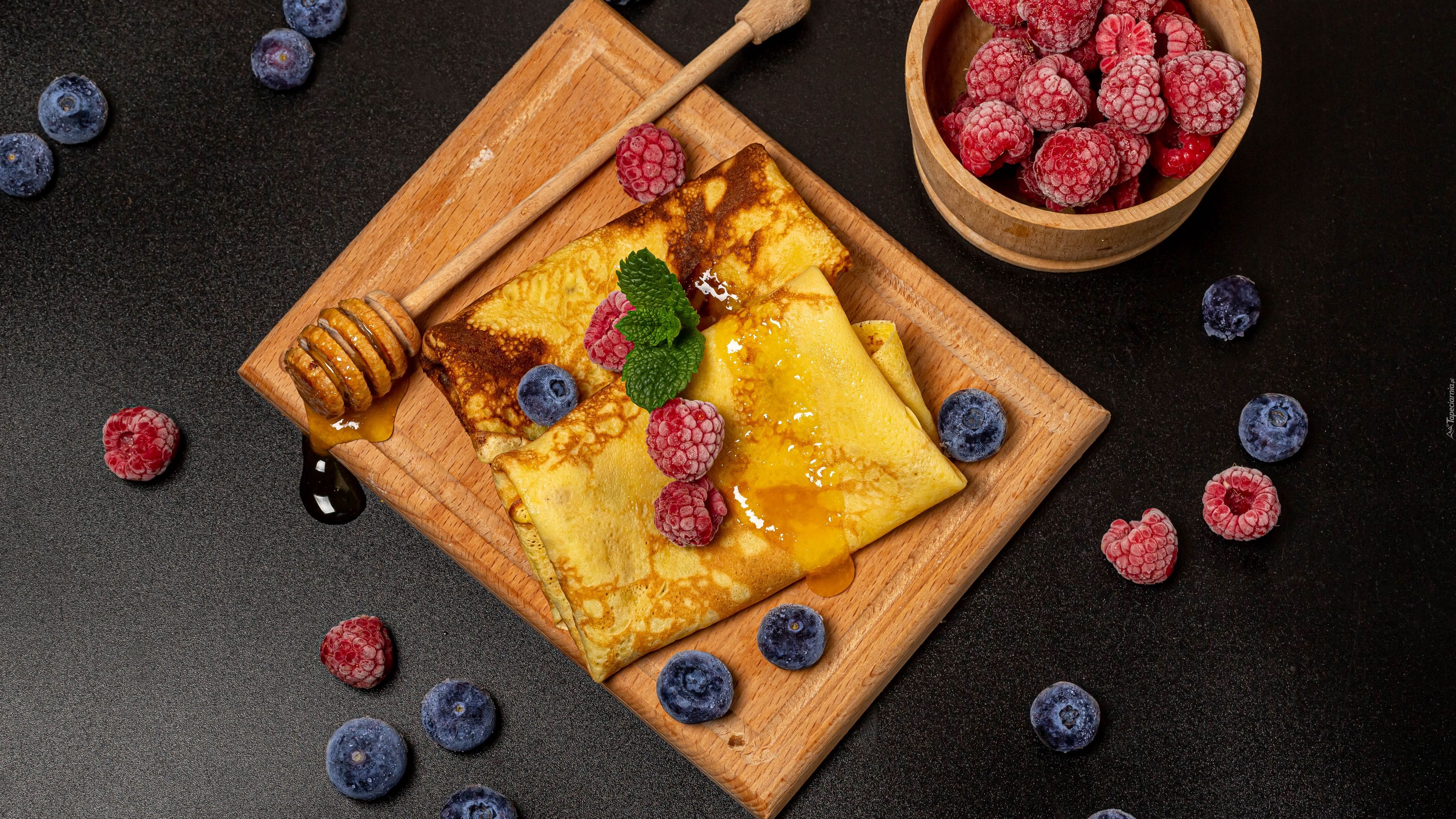 Edytor tapety: Naleśnik z malinami i jagodami