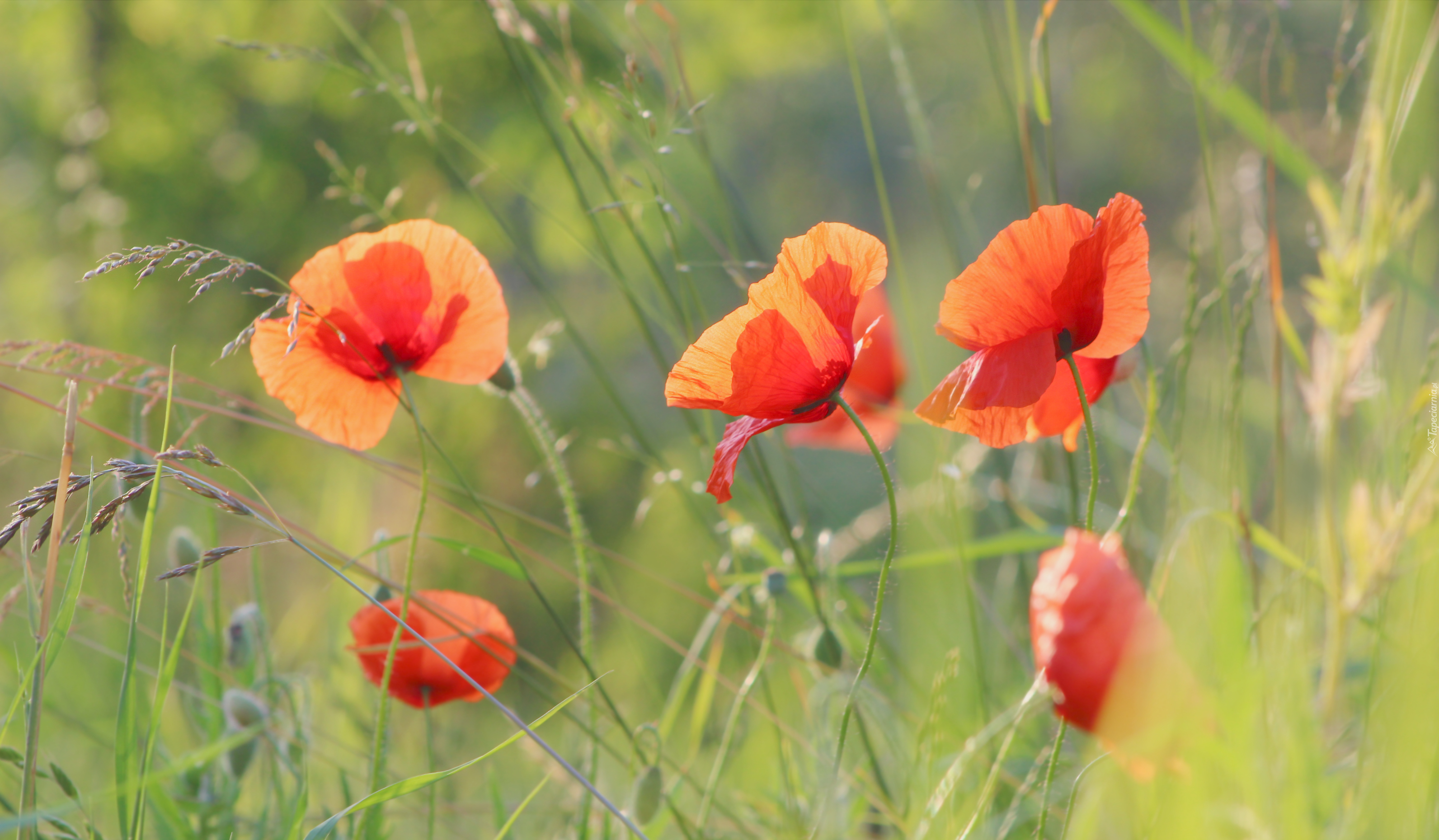 Edytor tapety: Czerwone maki pośród traw