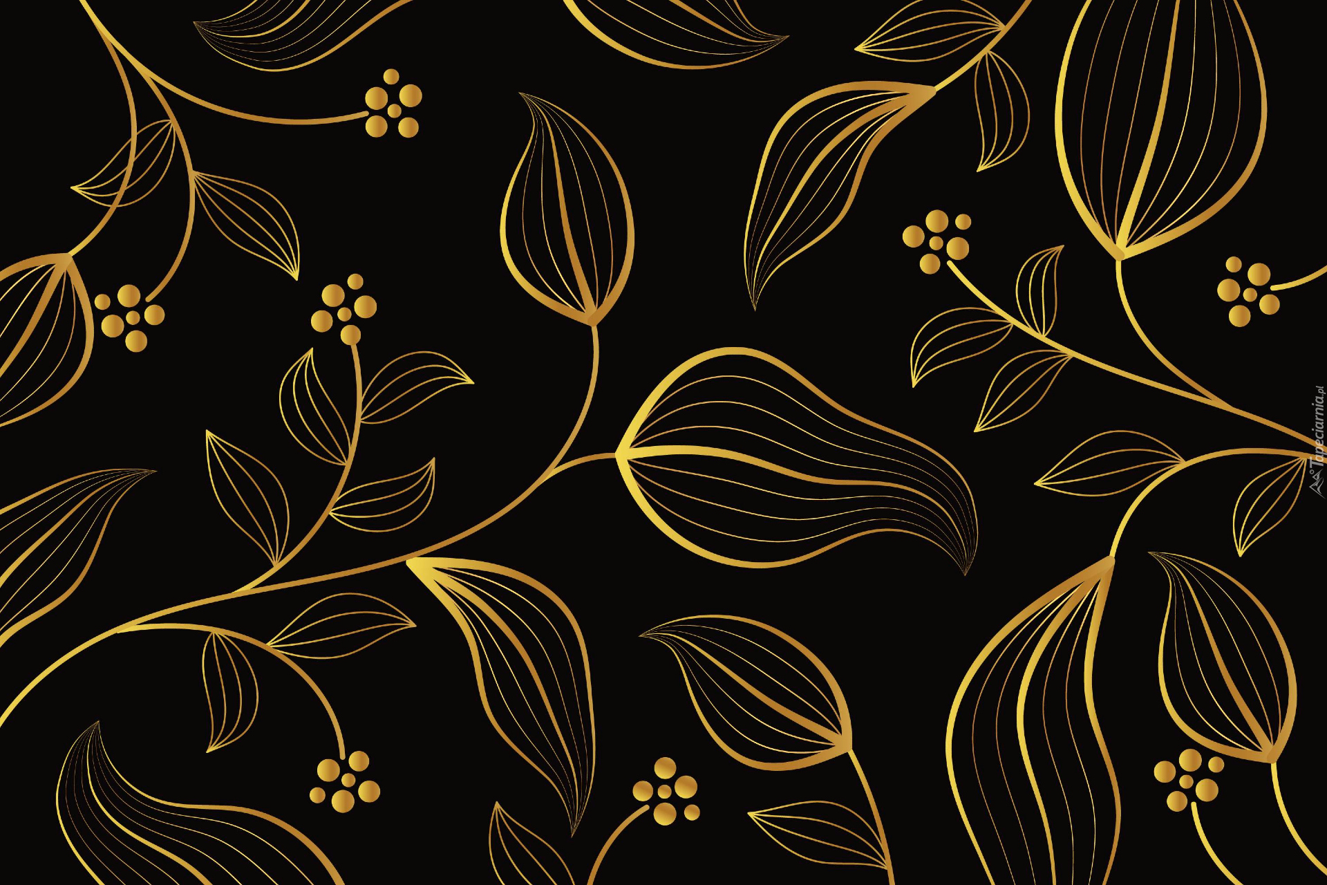 Edytor tapety: Złote liście i kwiaty na ciemnym tle
