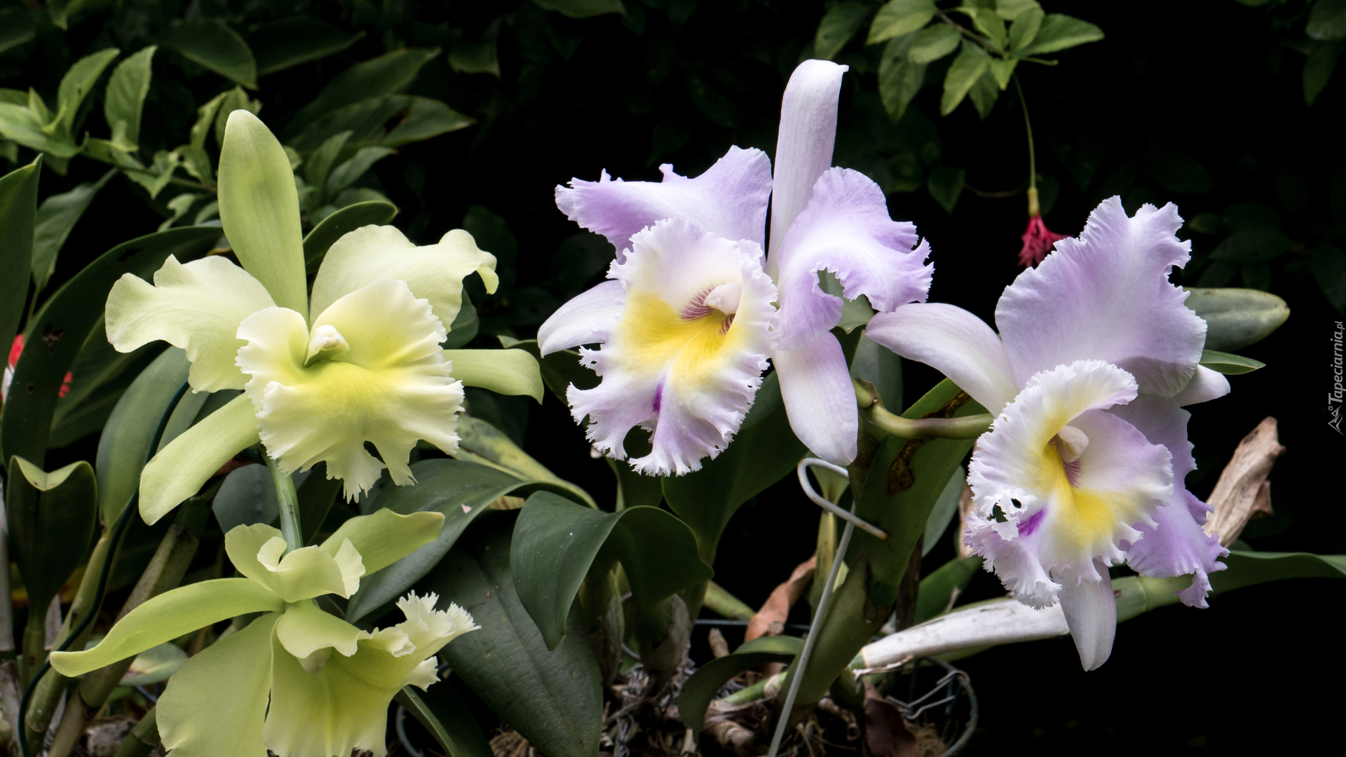 Edytor tapety: Jasnofioletowe i żółte storczyki