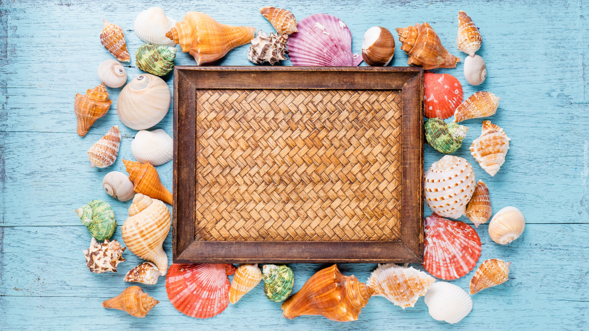 Edytor tapety: Ramka w kompozycji z muszelkami