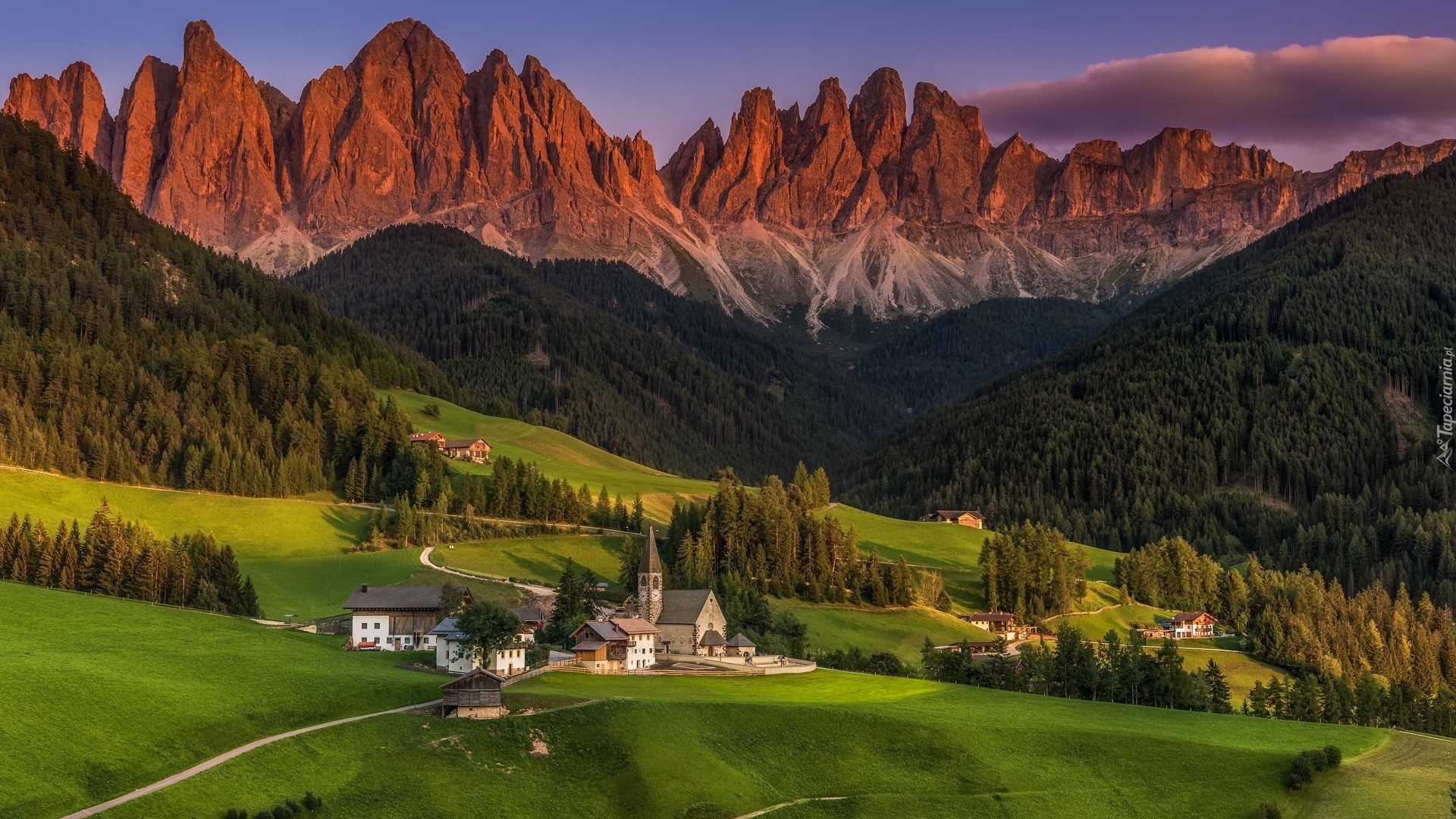 Edytor tapety: Góry i domy w dolinie Val di Funes