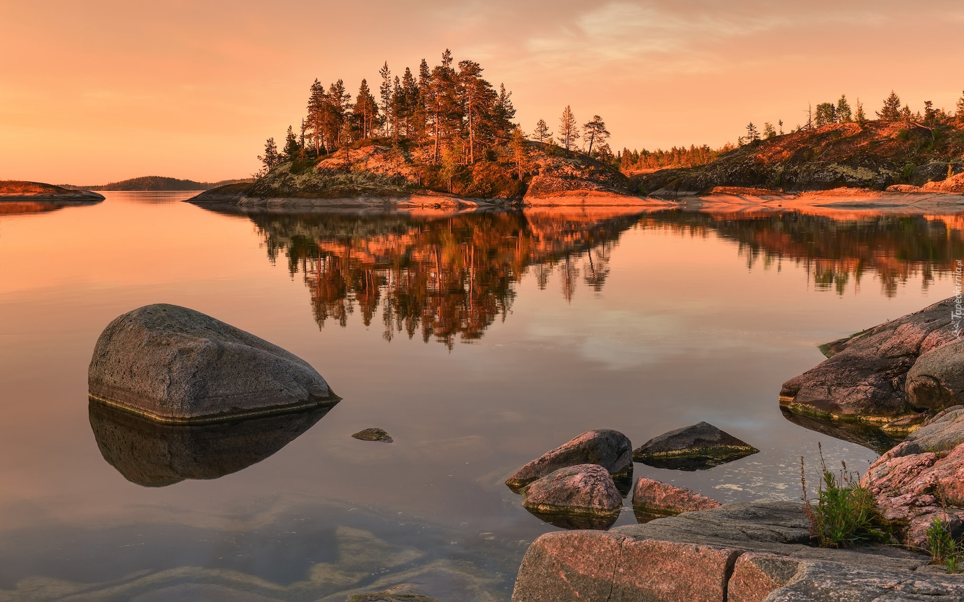 Edytor tapety: Drzewa i skały nad Jeziorem Ładoga