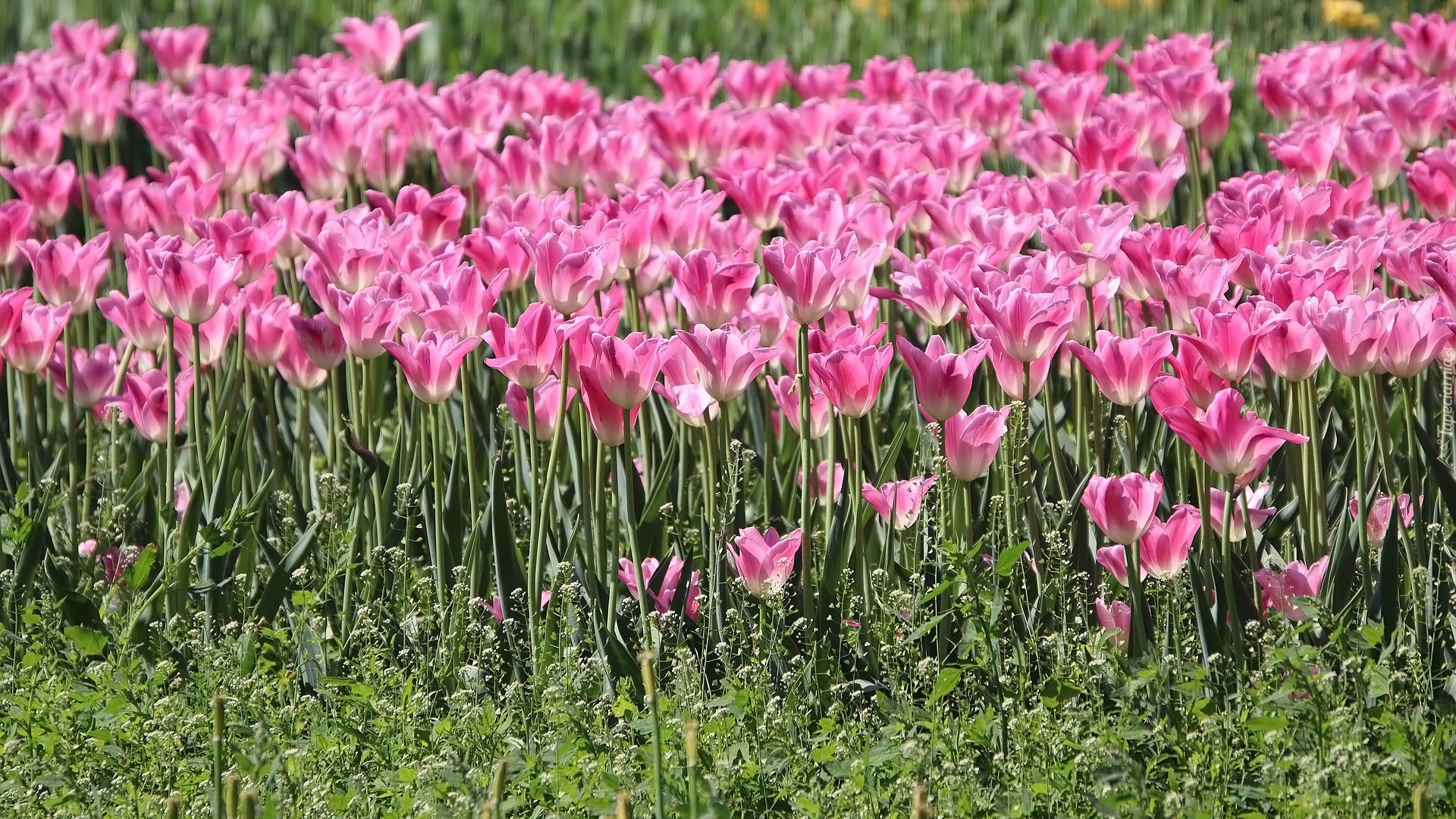 Edytor tapety: Różowe tulipany w słońcu