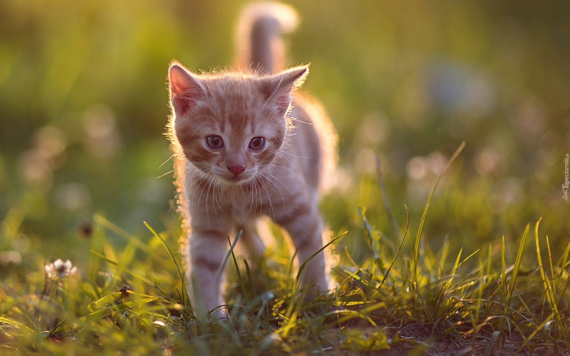 Edytor tapety: Mały rudawy kotek na trawie