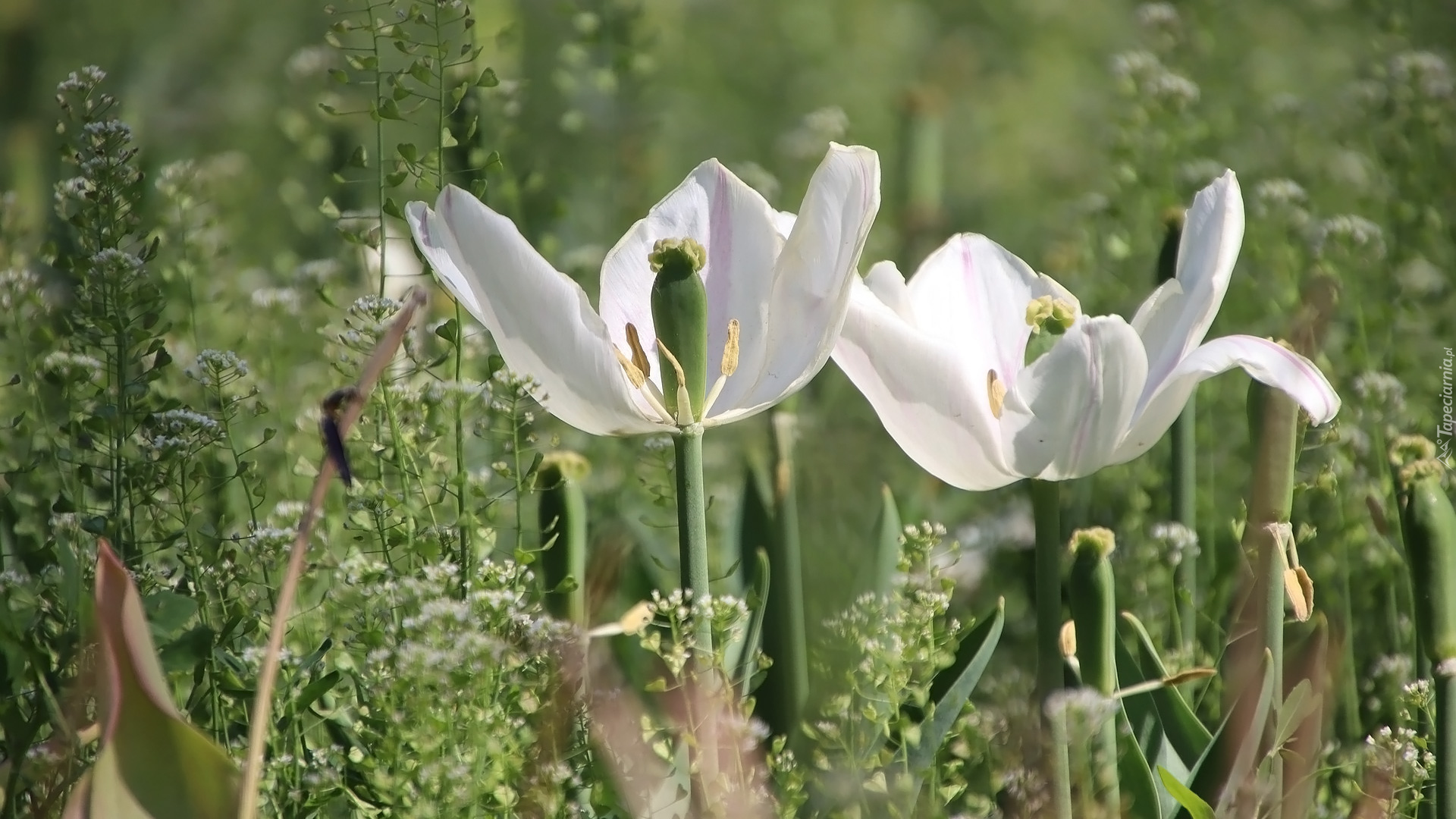 Edytor tapety: Dwa białe przekwitnięte tulipany
