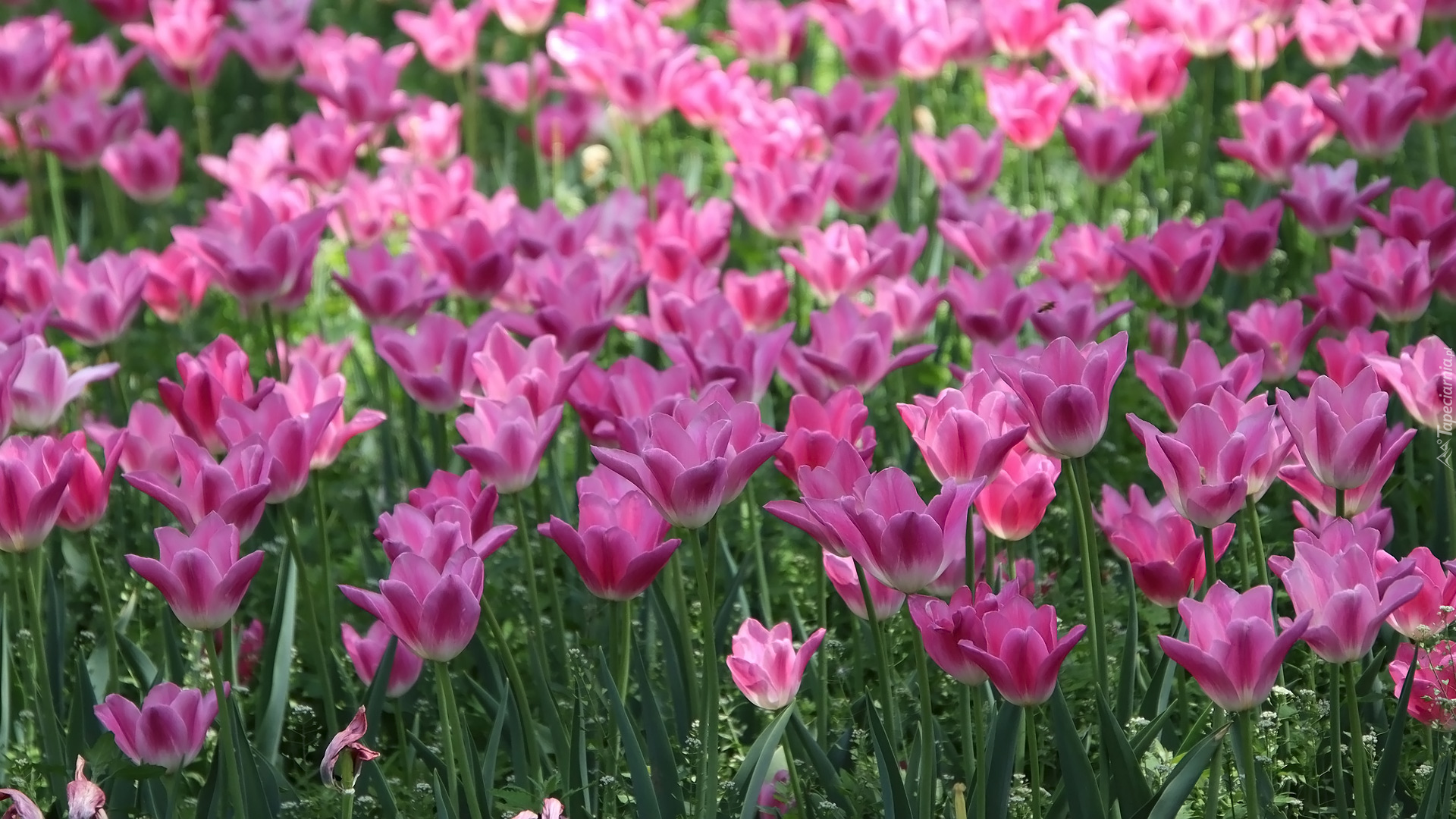 Edytor tapety: Rozkwitające różowe tulipany