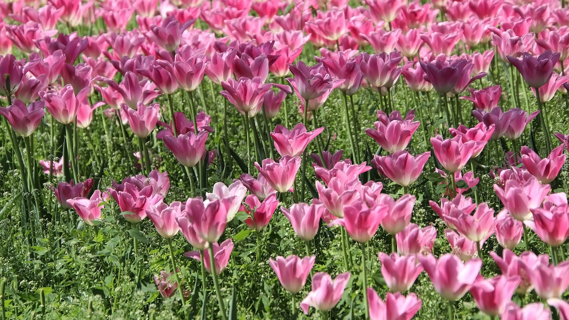 Edytor tapety: Kwitnące różowe tulipany na polu