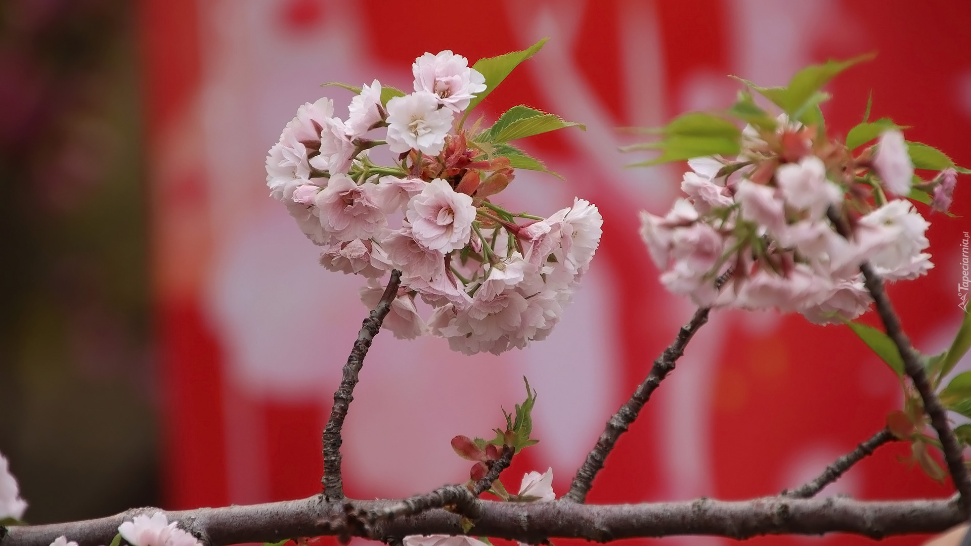 Edytor tapety: Kwiaty kwitnącej wiśni japońskiej na gałązkach