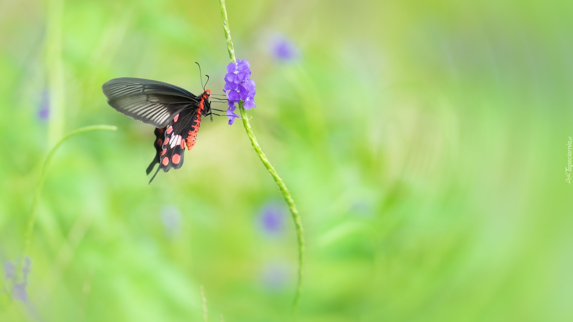 Edytor tapety: Czarny motyl na fioletowym kwiatku
