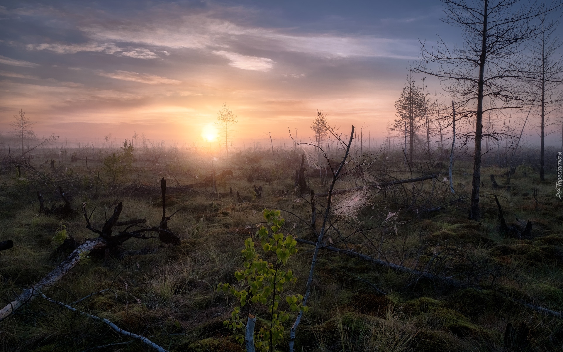 Edytor tapety: Mglisty poranek nad bagnami