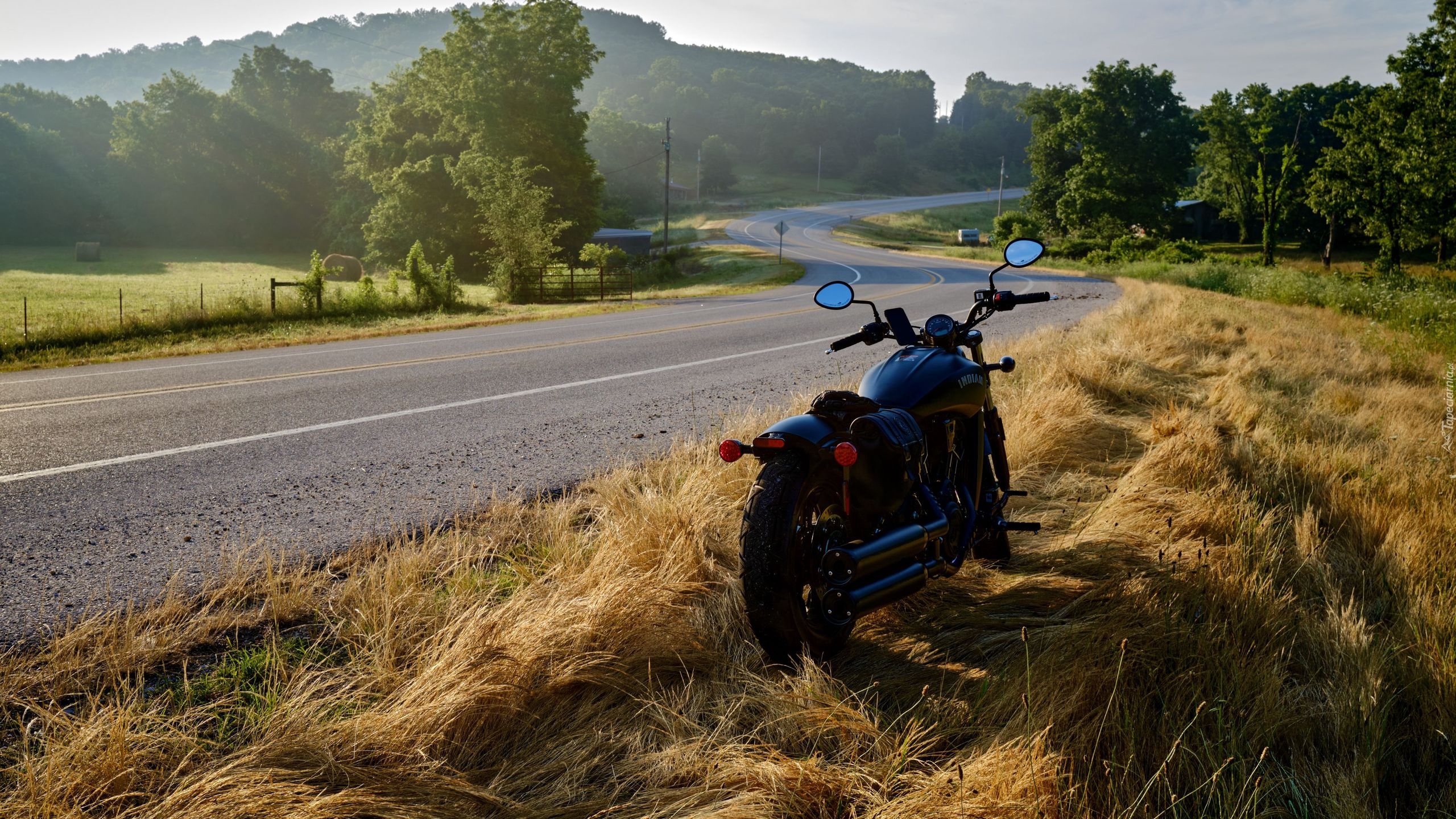 Edytor tapety: Motocykl Indian na poboczu drogi