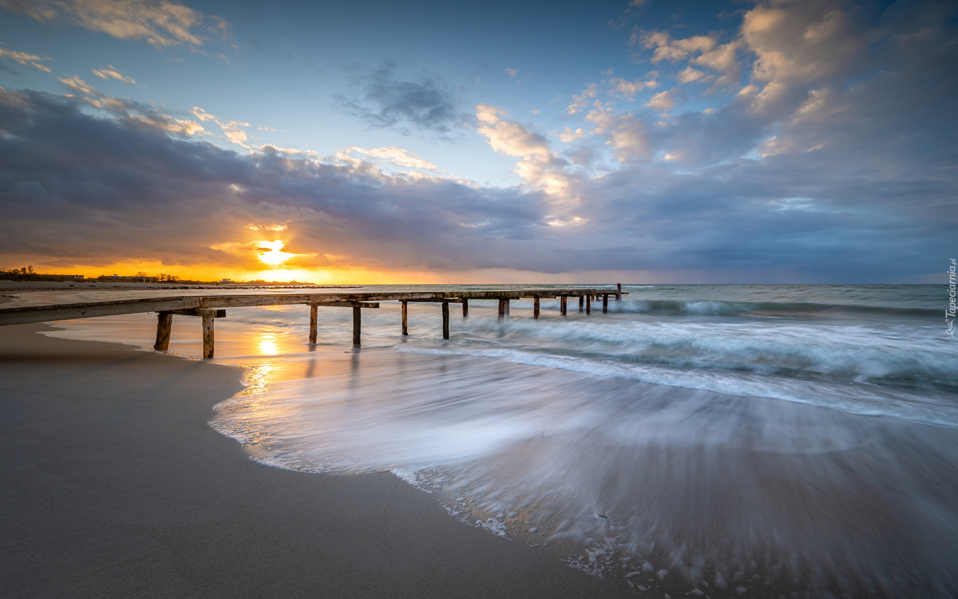Edytor tapety: Falochron i zachód słońca nad morzem