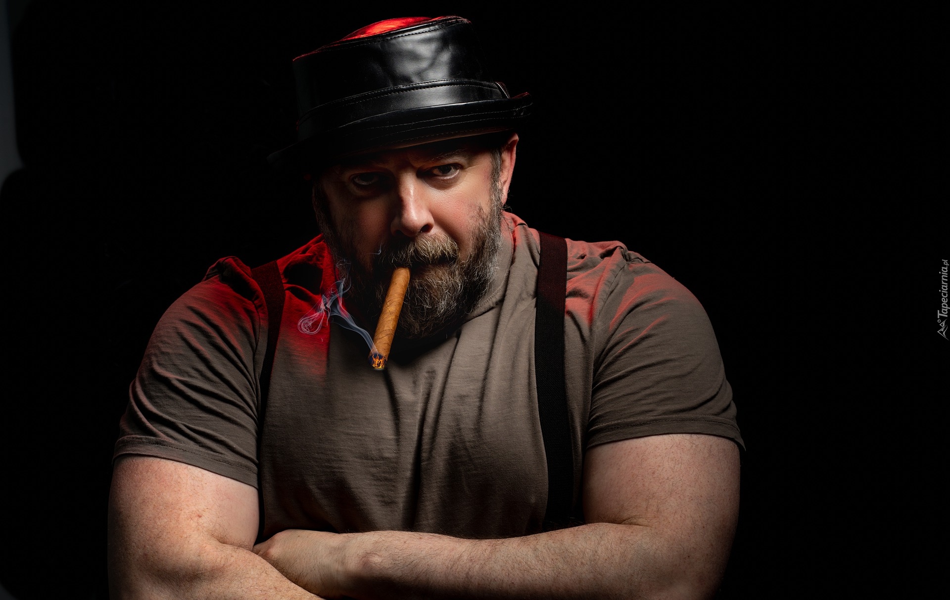 Edytor tapety: Brodaty mężczyzna w kapeluszu z cygarem