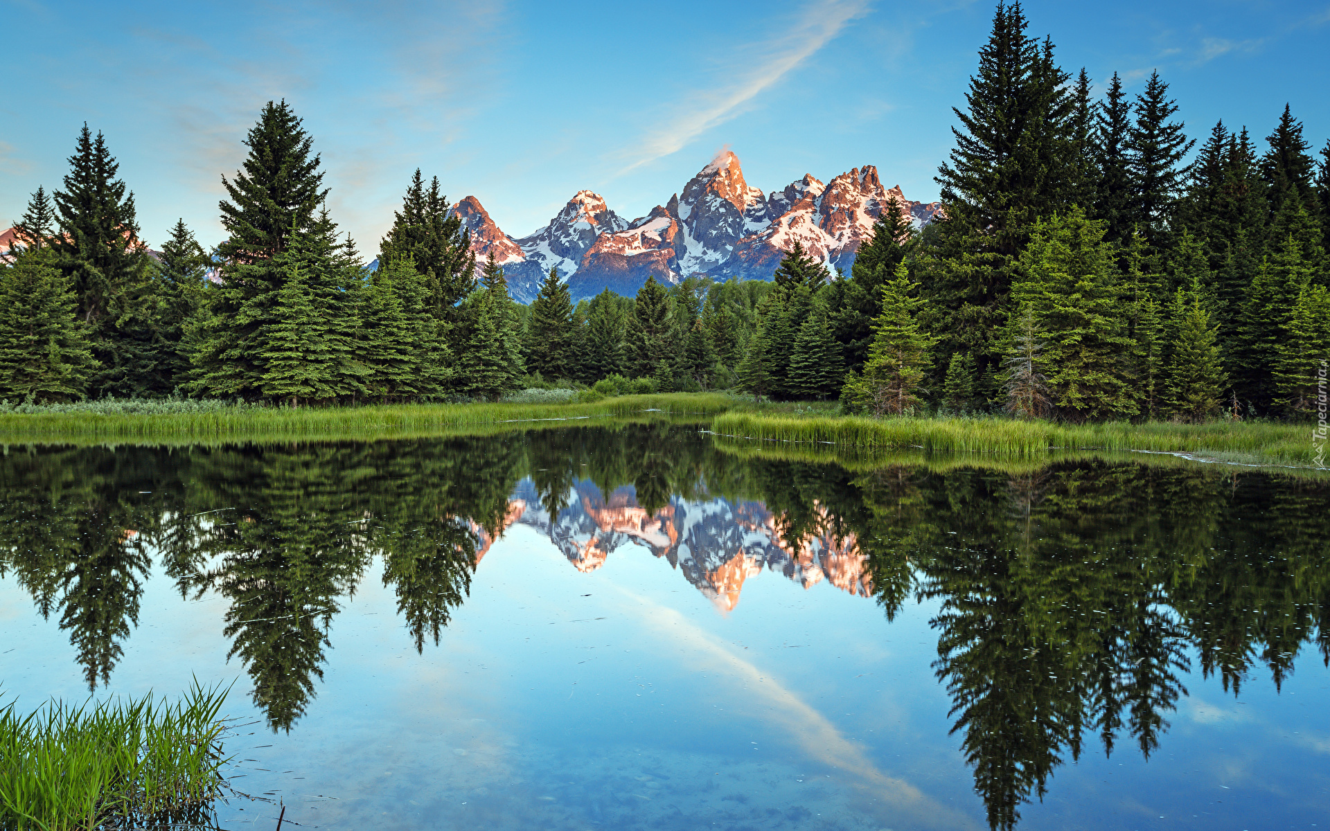 Edytor tapety: Odbicie drzew w rzece Snake River