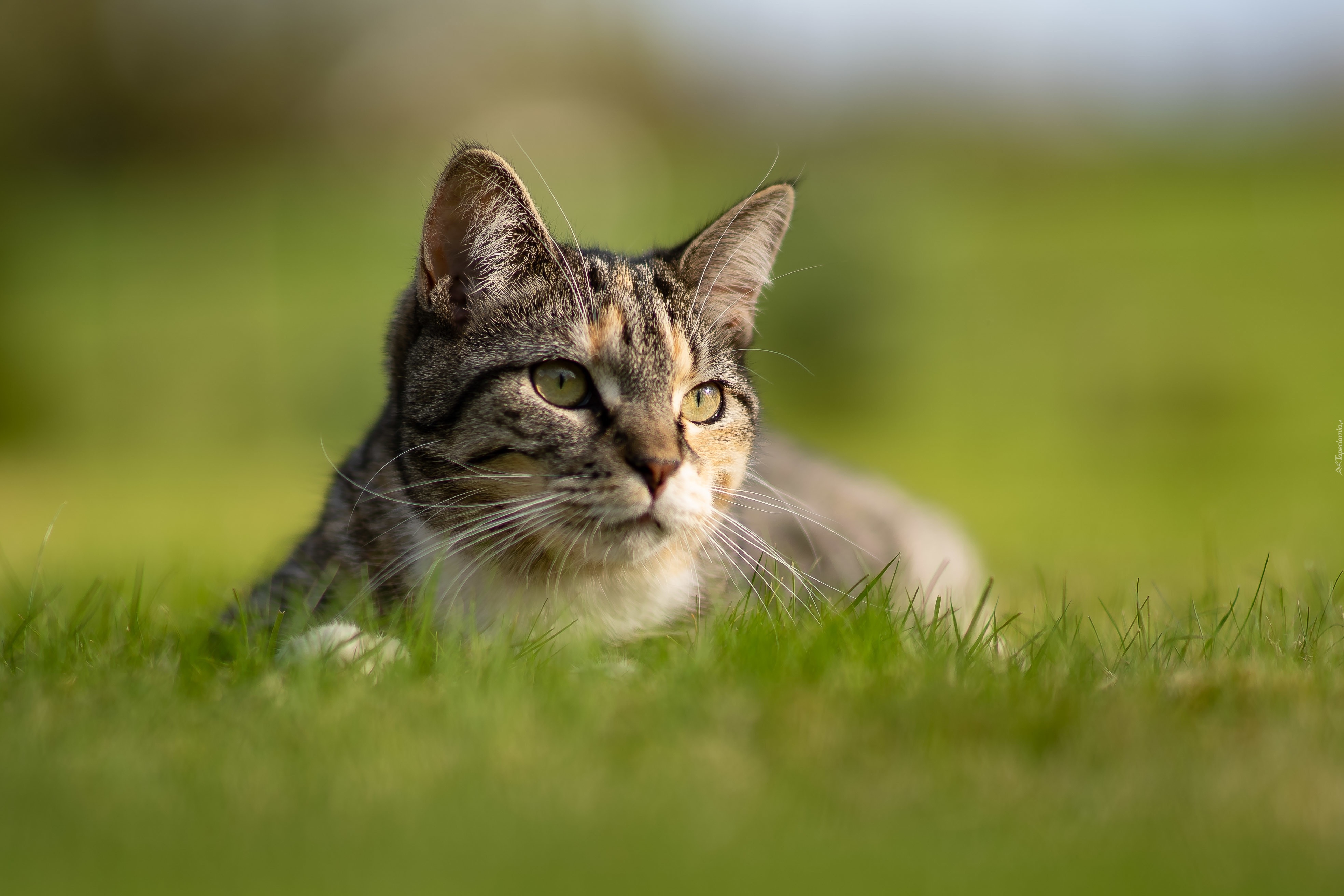 Edytor tapety: Leżący kot w trawie