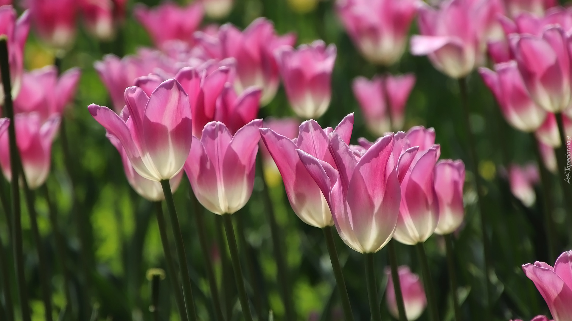 Edytor tapety: Rozświetlone różowo-białe tulipany