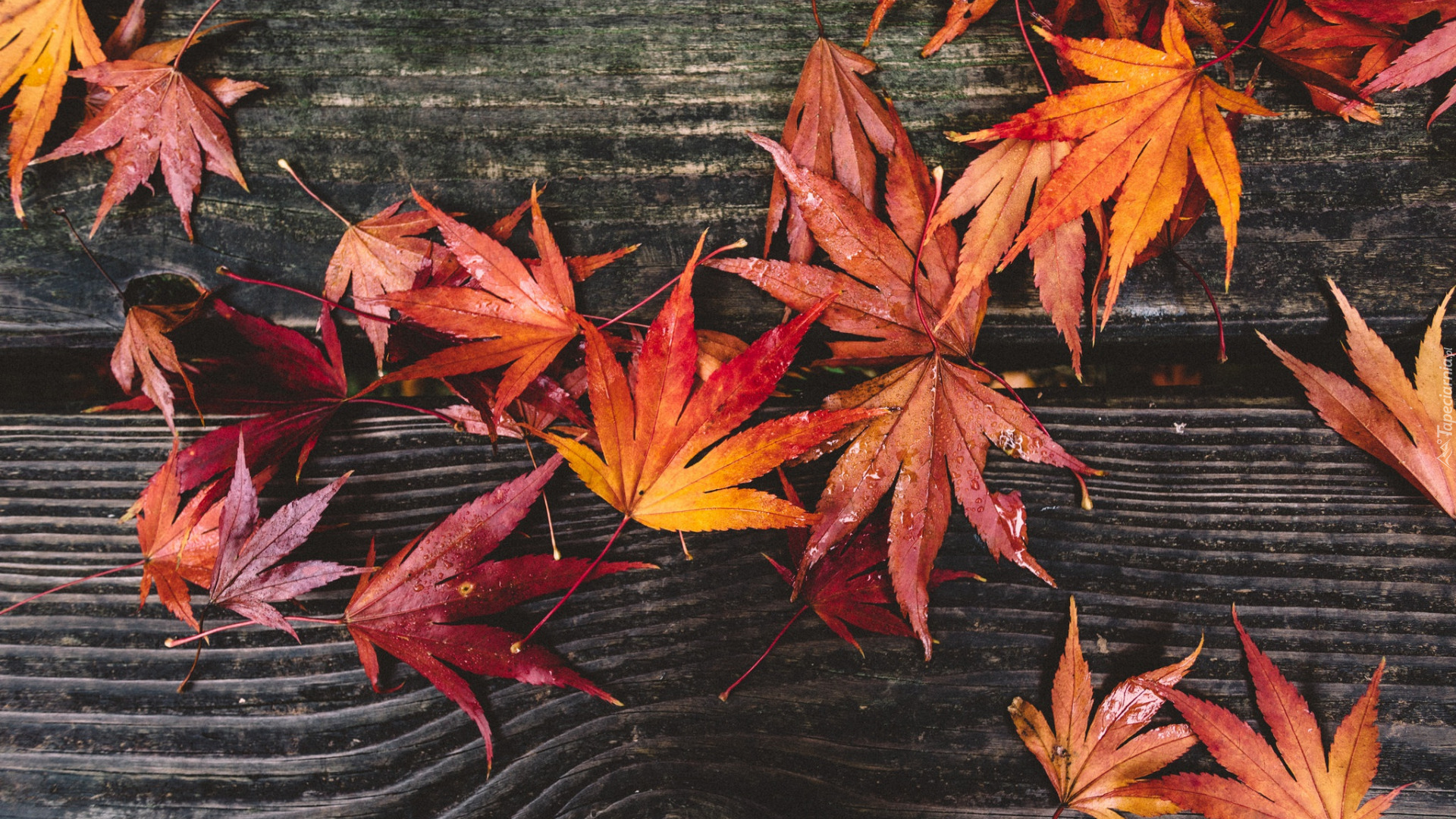 Edytor tapety: Mokre brązowo-żółte liście klonu