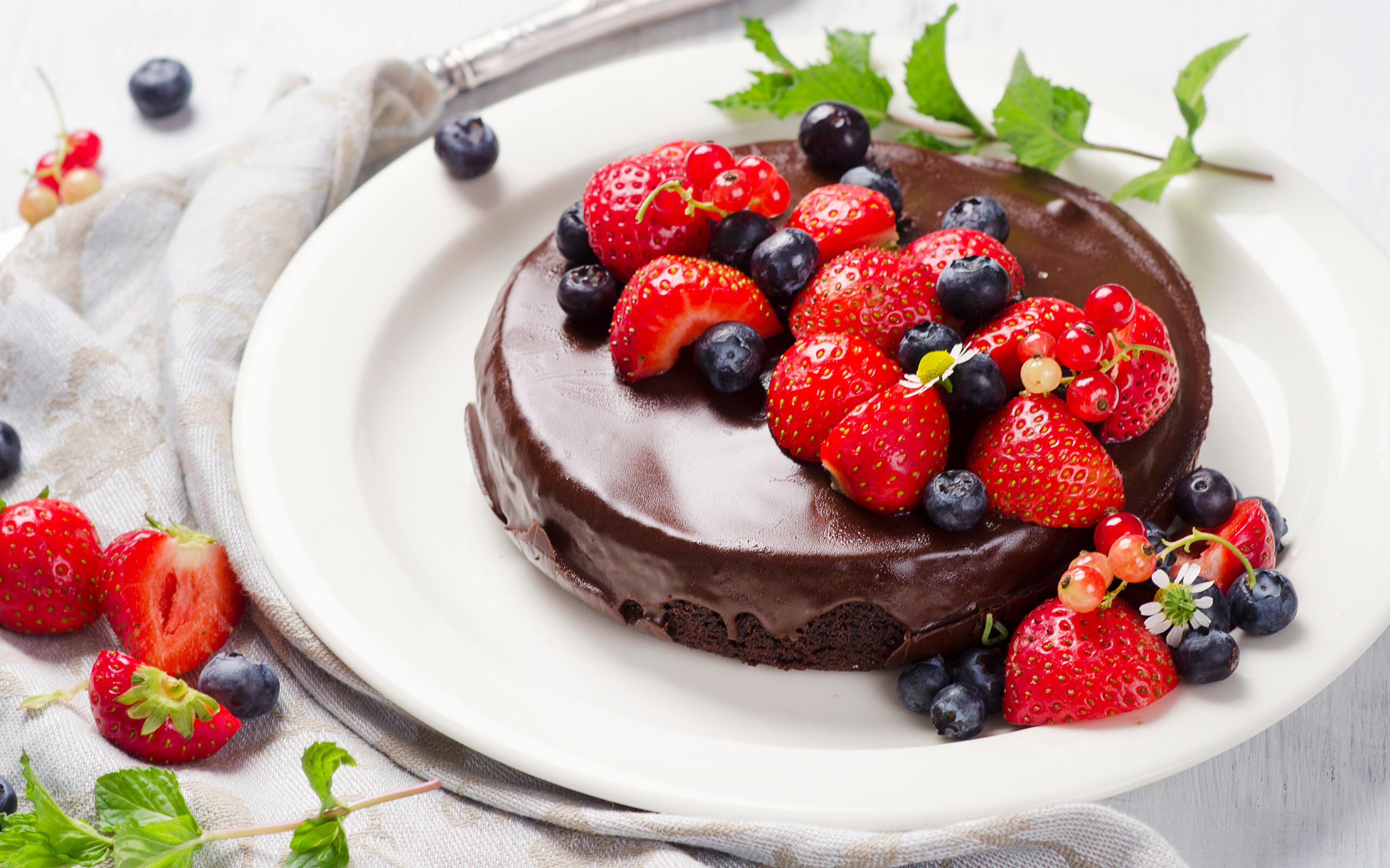 Edytor tapety: Ciasto w polewie czekoladowej z truskawkami