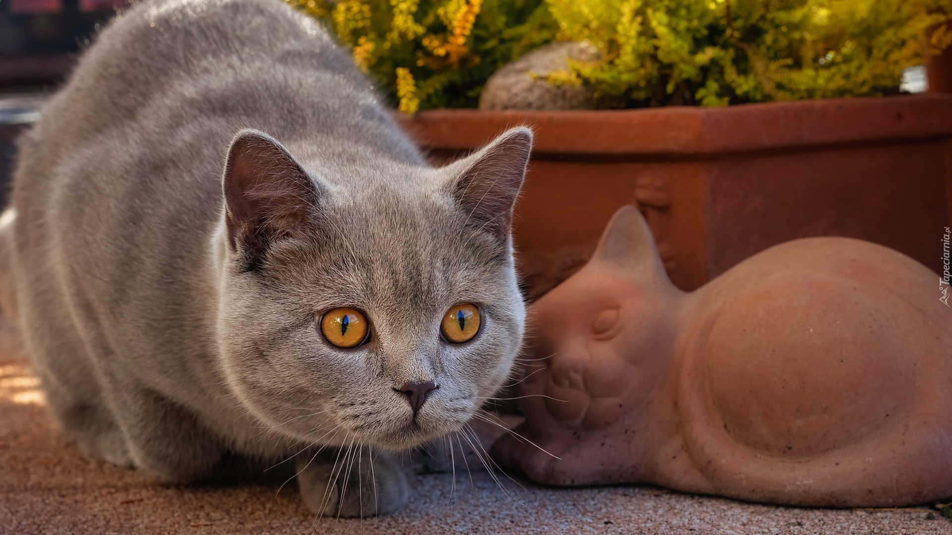 Edytor tapety: Kot brytyjski krótkowłosy obok ceramicznego kota