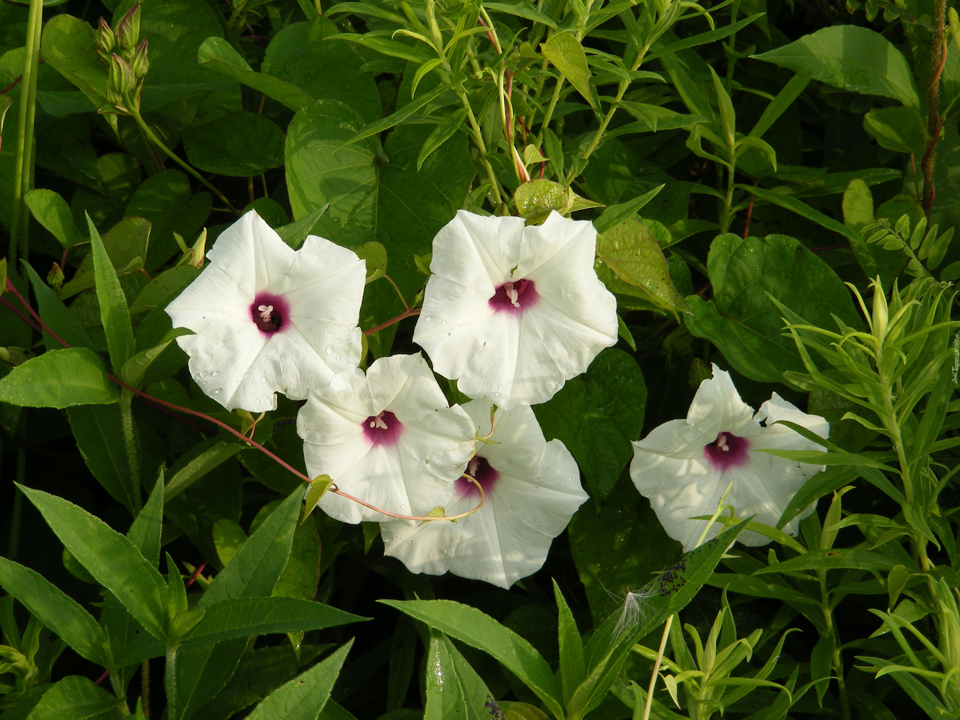 Edytor tapety: Biały powój wśród liści