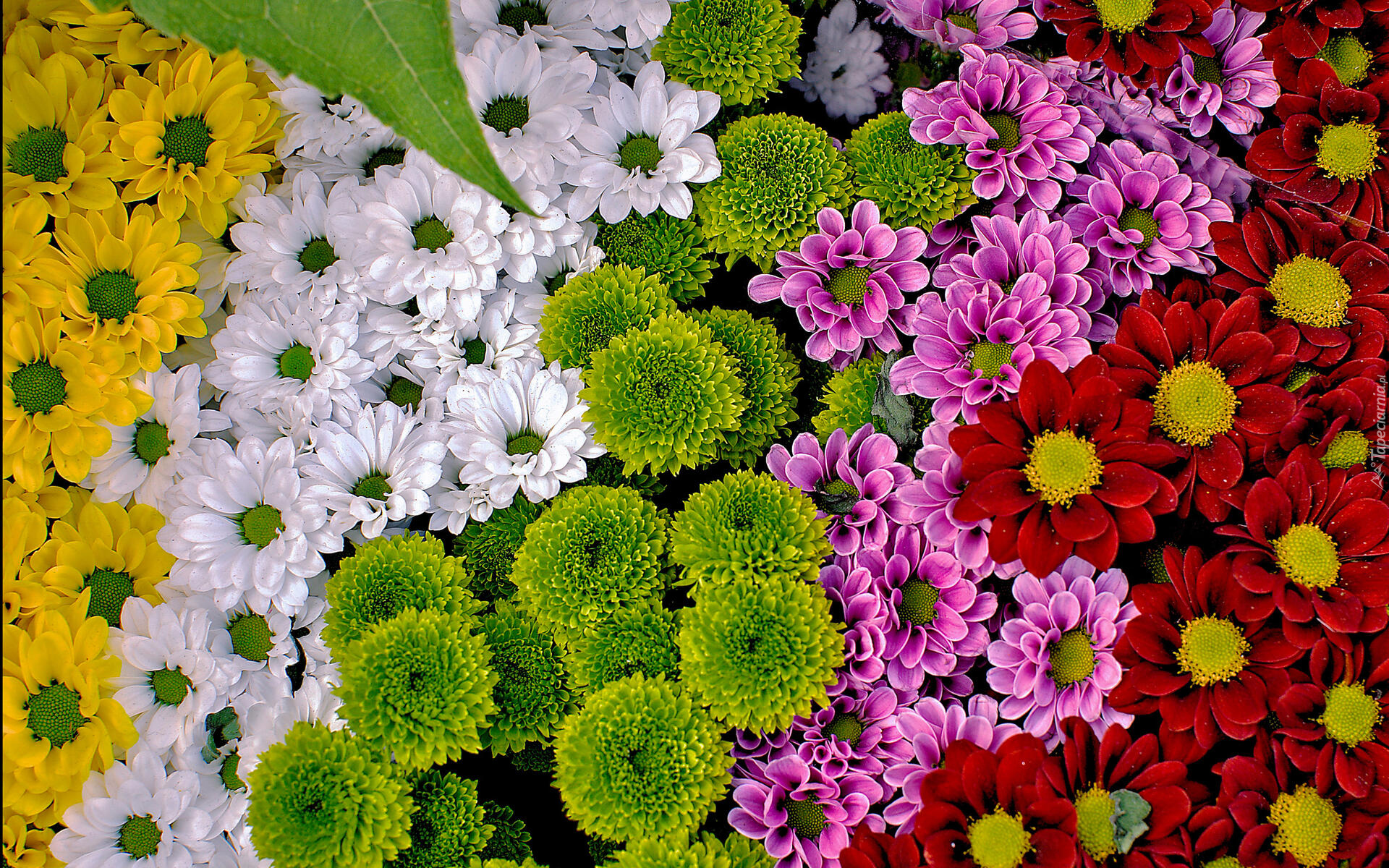 Edytor tapety: Różnokolorowe rozkwitnięte chryzantemy