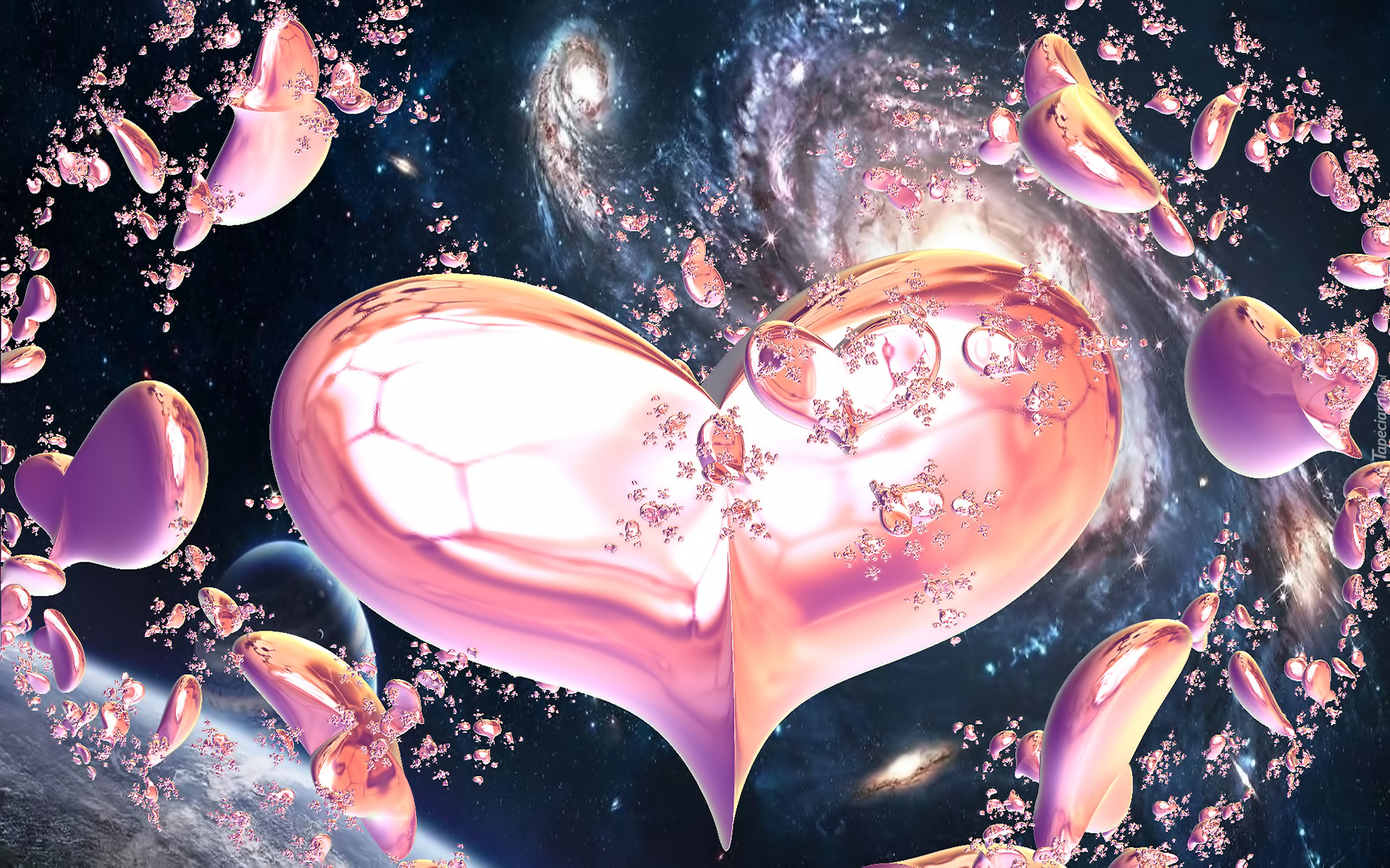 Edytor tapety: Różowe serca w grafice