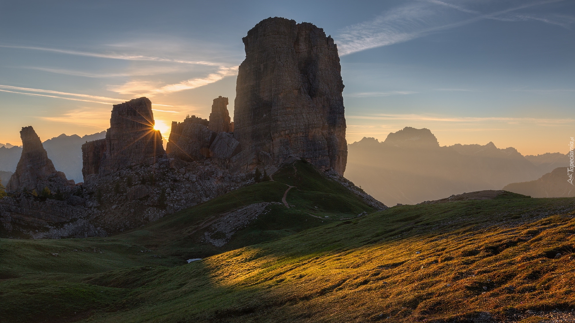Edytor tapety: Dolomity o wschodzie słońca we mgle