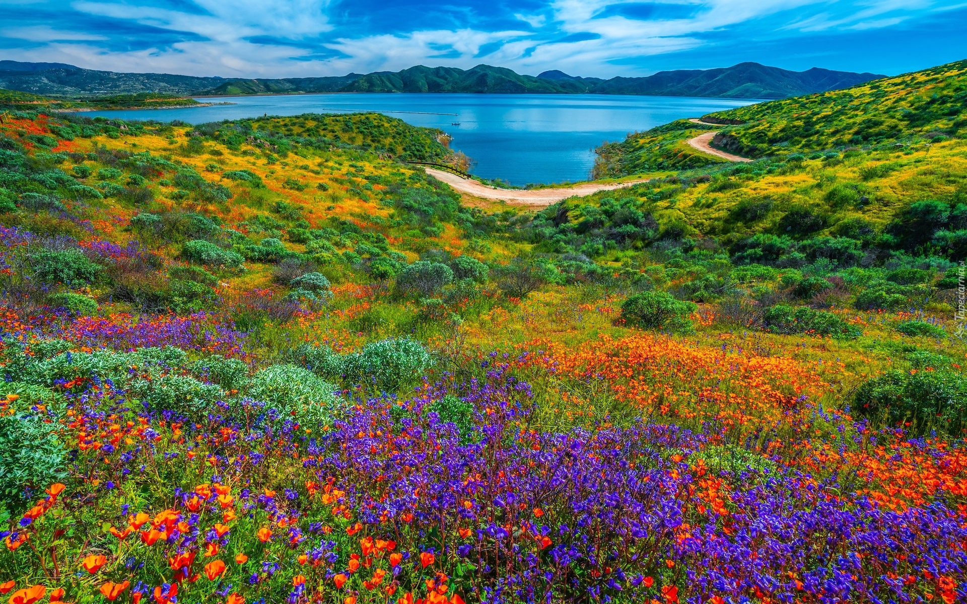 Edytor tapety: Kwiaty na łące w dolinie Diamond Valley
