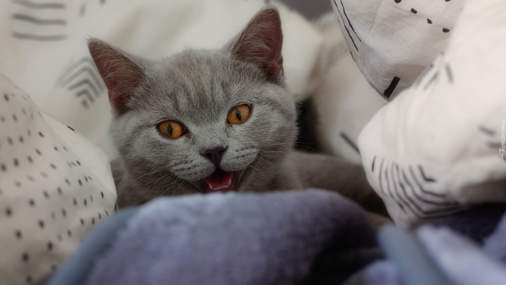 Edytor tapety: Kot brytyjski krótkowłosy wśród poduszek