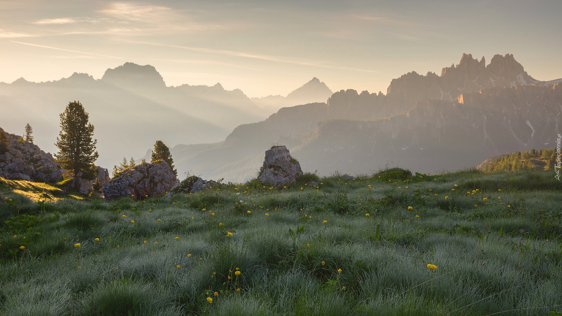 Edytor tapety: Łąka i zamglone Dolomity