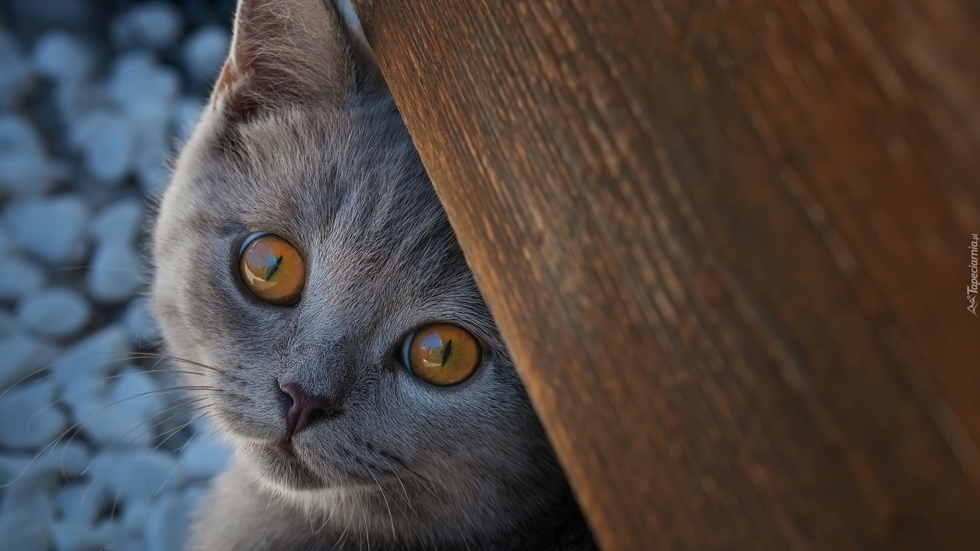 Edytor tapety: Kot brytyjski krótkowłosy spoglądający zza deski