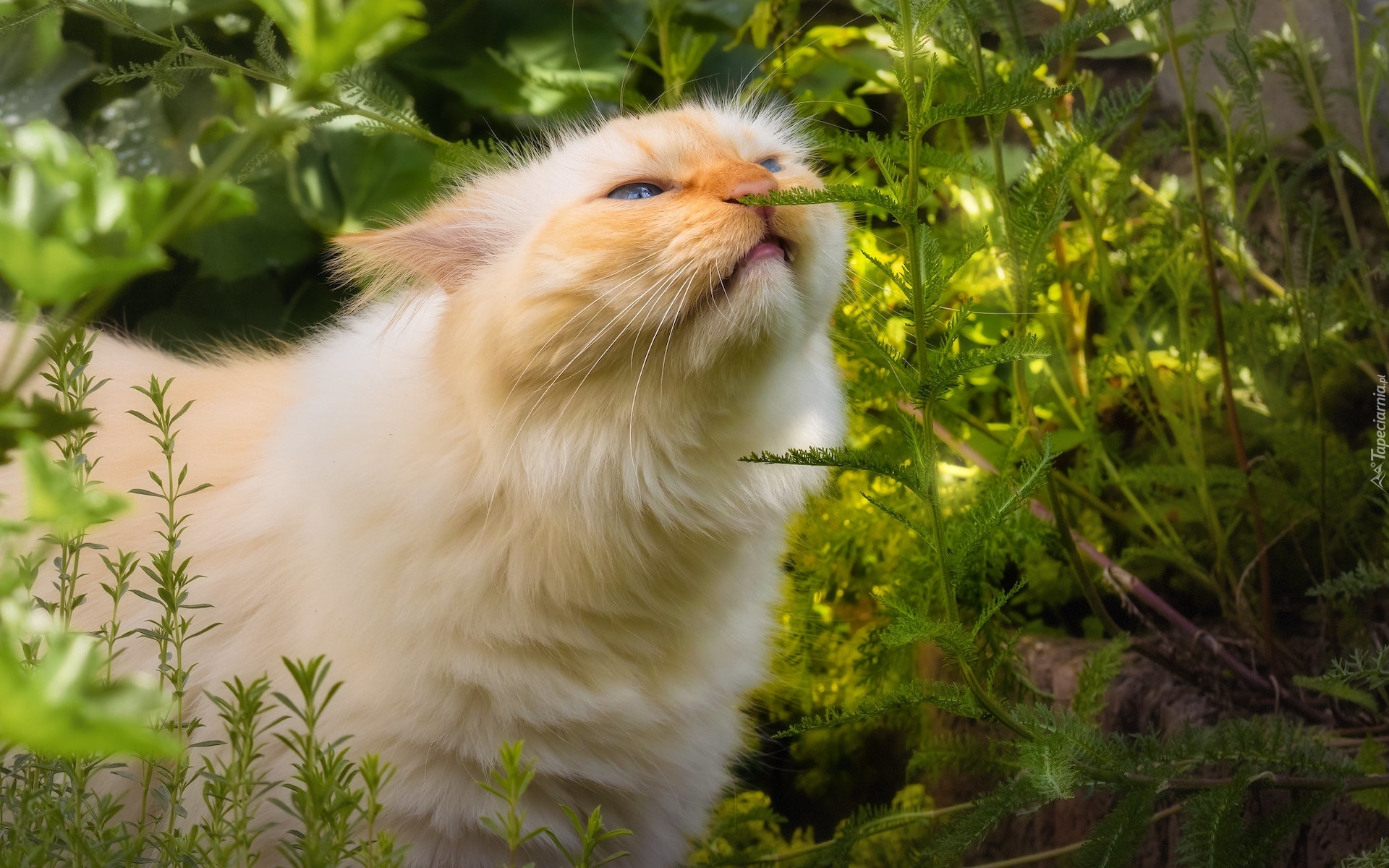 Edytor tapety: Rudo-biszkoptowy kot wśród zielonych roślin