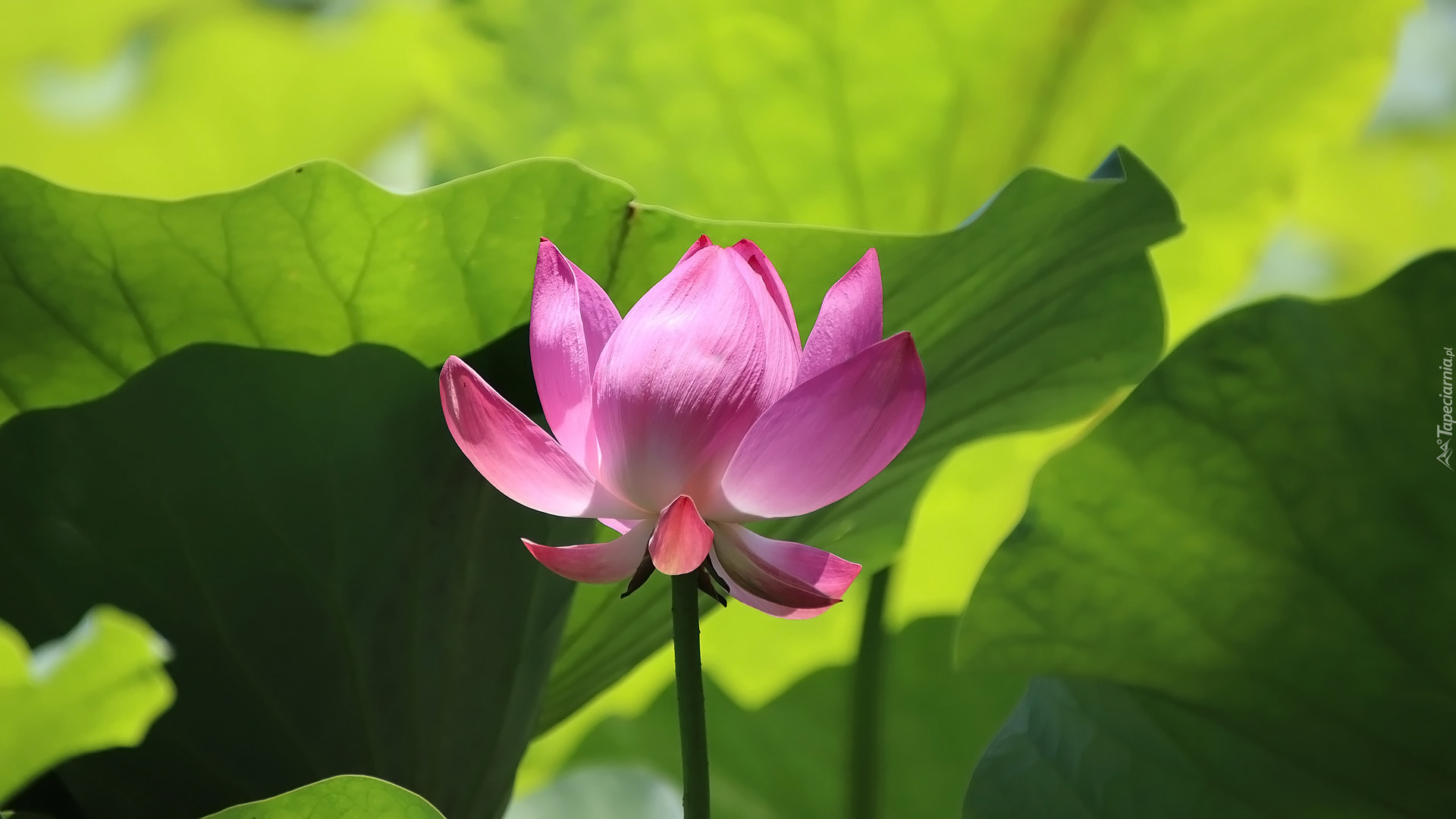 Edytor tapety: Rozkwitnięty lotos wśród liści