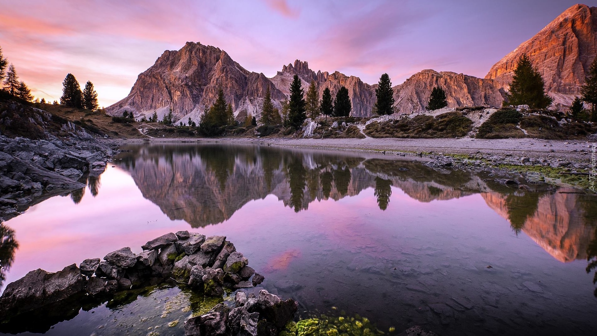 Edytor tapety: Odbicie Dolomitów w jeziorze Lago Limides