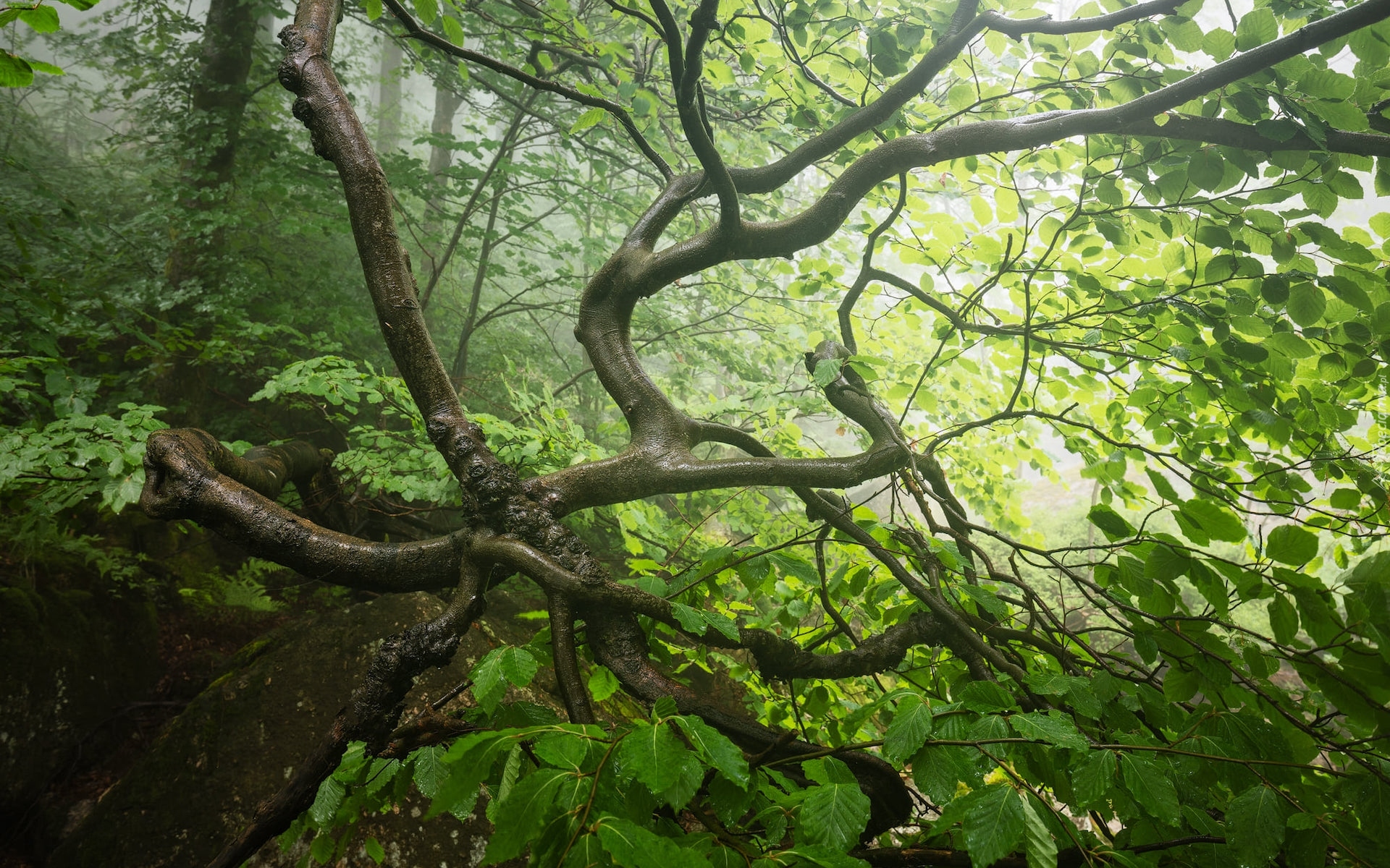 Edytor tapety: Zielone liście na gałęziach drzewa