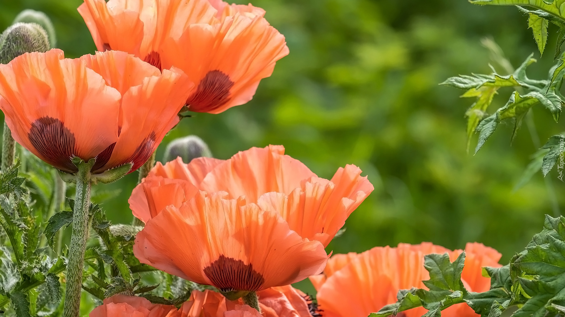 Edytor tapety: Maki z pąkami na zielonym tle