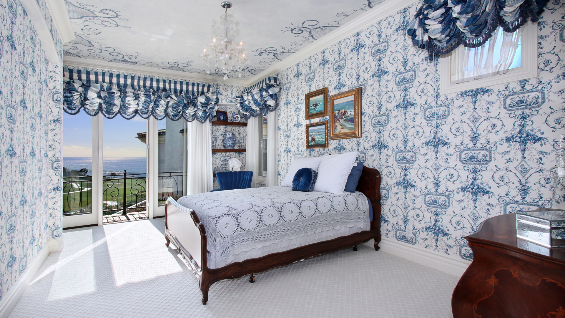 Edytor tapety: Sypialnia w niebiesko-białej tonacji