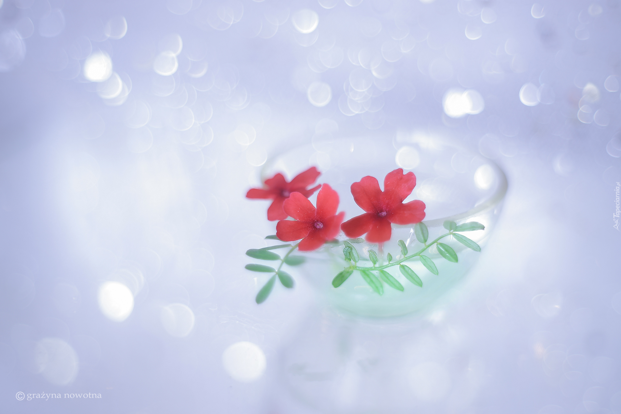 Edytor tapety: Kwiaty czerwonej werbeny w szklanym wazoniku