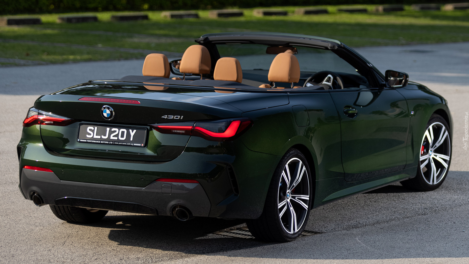 Edytor tapety: Tył zielonego kabrioletu BMW Serii 4
