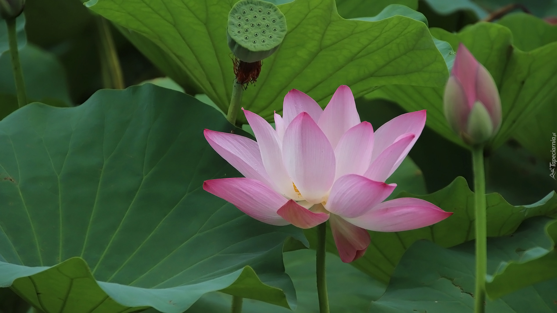 Edytor tapety: Rozkwitnięty kwiat i pąk lotosu