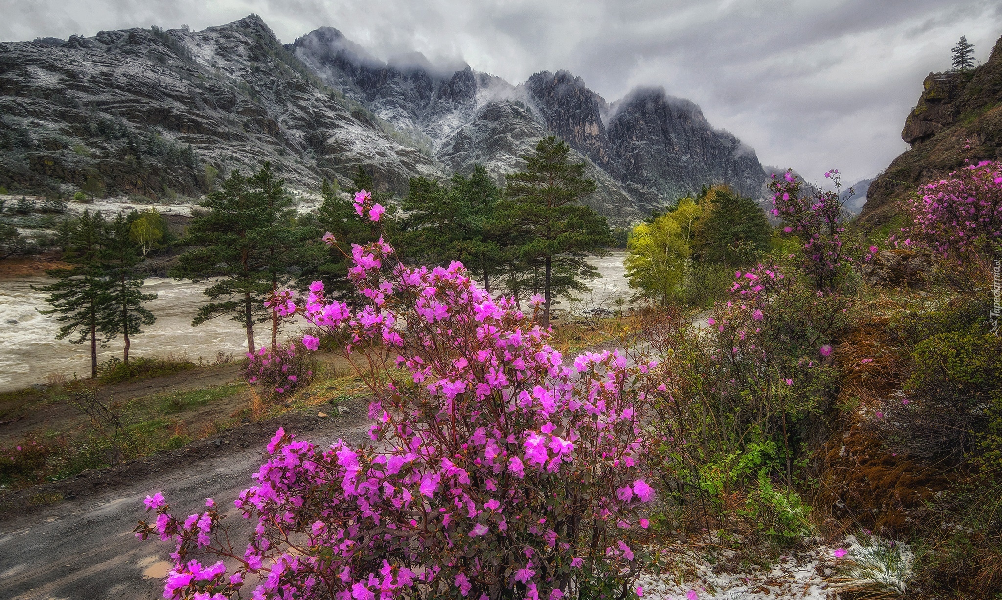 Edytor tapety: Różanecznik na tle Gór Ałtaj